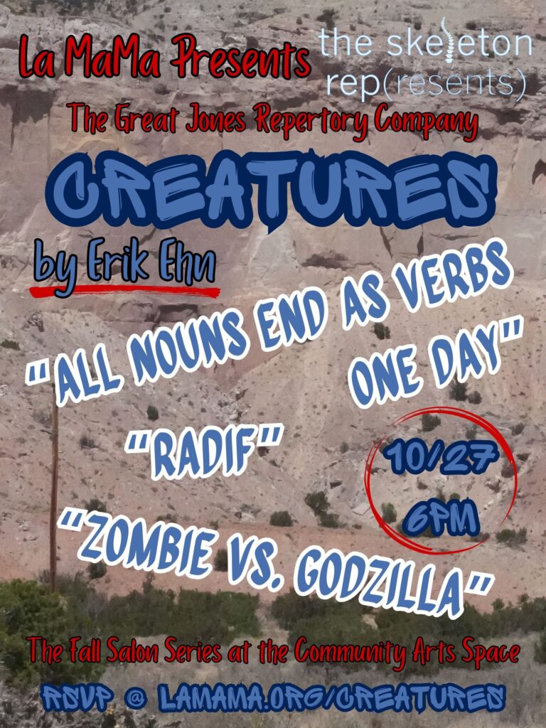 3 Staged Readings of New Shorts by Erik Ehn: All Nouns End As Verbs One Day; Radif; & Zombie vs. Godzilla.